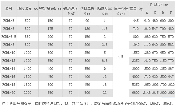 適用范圍: 適用破碎機前及輸送機膠帶上的任何物料除鐵,可適用于各種惡劣的環(huán)境條件。 技術(shù)特點(diǎn): 1、磁路采用計算機模擬設計,透磁深度大,磁力強。 2、內部采用電工專(zhuān)用樹(shù)脂澆注,自冷式全密封結構,防塵、防雨、耐腐蝕。 3、可有效吸除混雜在非磁性物料中0.1-35公斤的鐵磁性物質(zhì)。